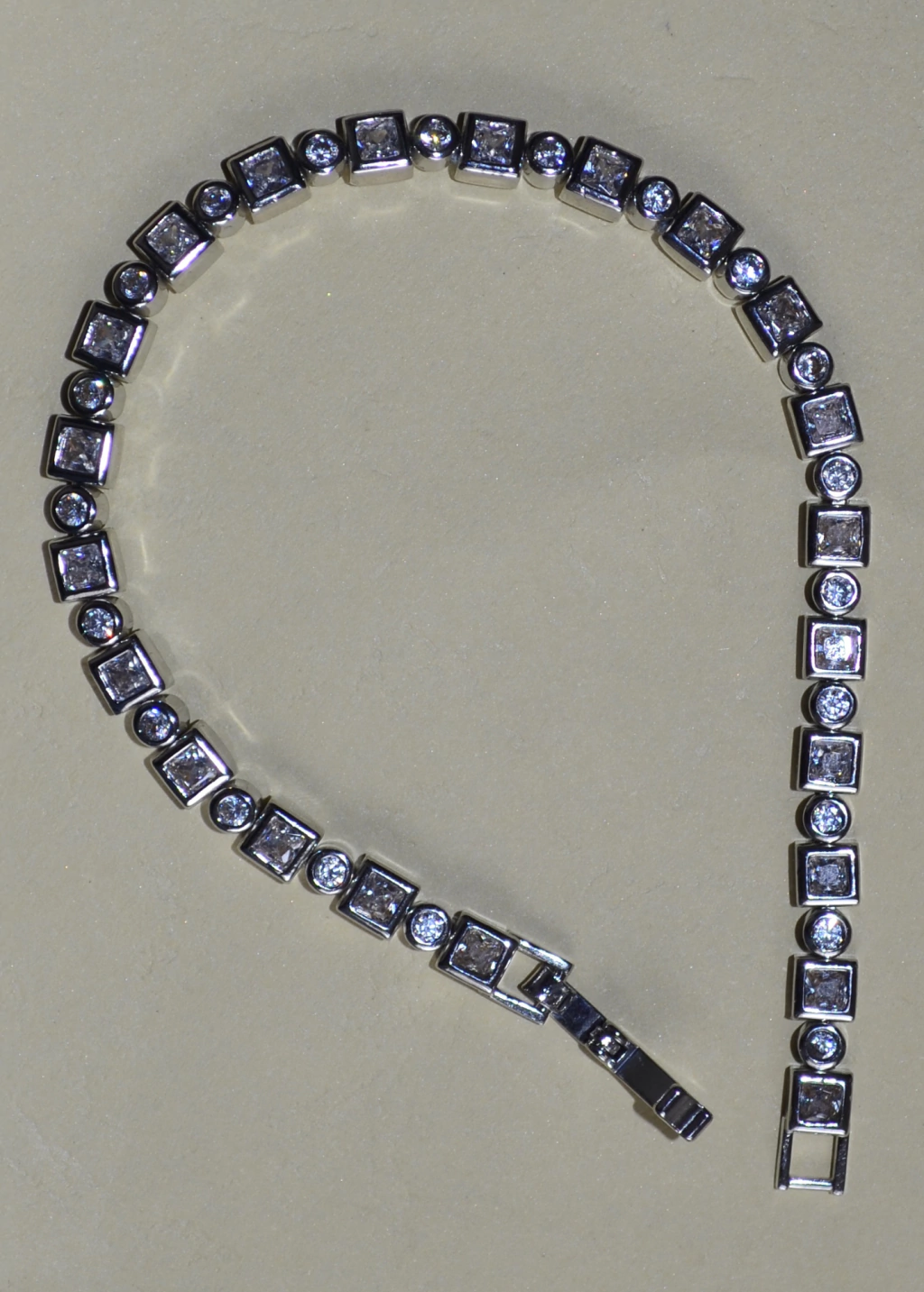Pulseira riviera cravação inglesa de zircônias redondas e quadradas